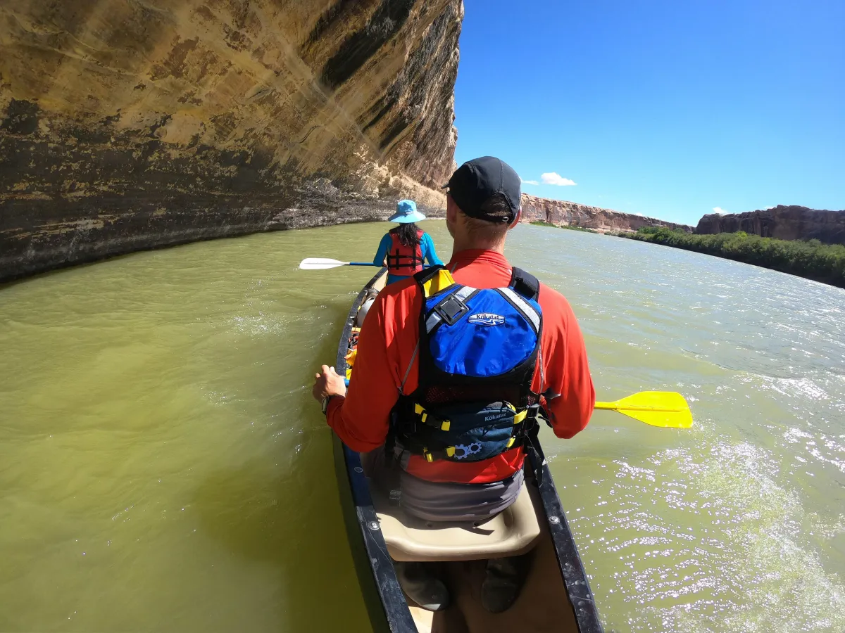 Conscientious paddlers rarely capsize on the flatwater of the Green and Colorado Rivers. Daily paddle splash and the possibility of rainy weather necessitates protecting equipment from moisture. This is especially true for equipment sitting at the bottom of the canoe where water will collect.Many boaters use heavy duty dry bags available in most outdoor stores. Large plastic storage boxes are very useful but are not watertight in the event of a capsize. Large heavy duty trash bags can be used to line your storage boxes.